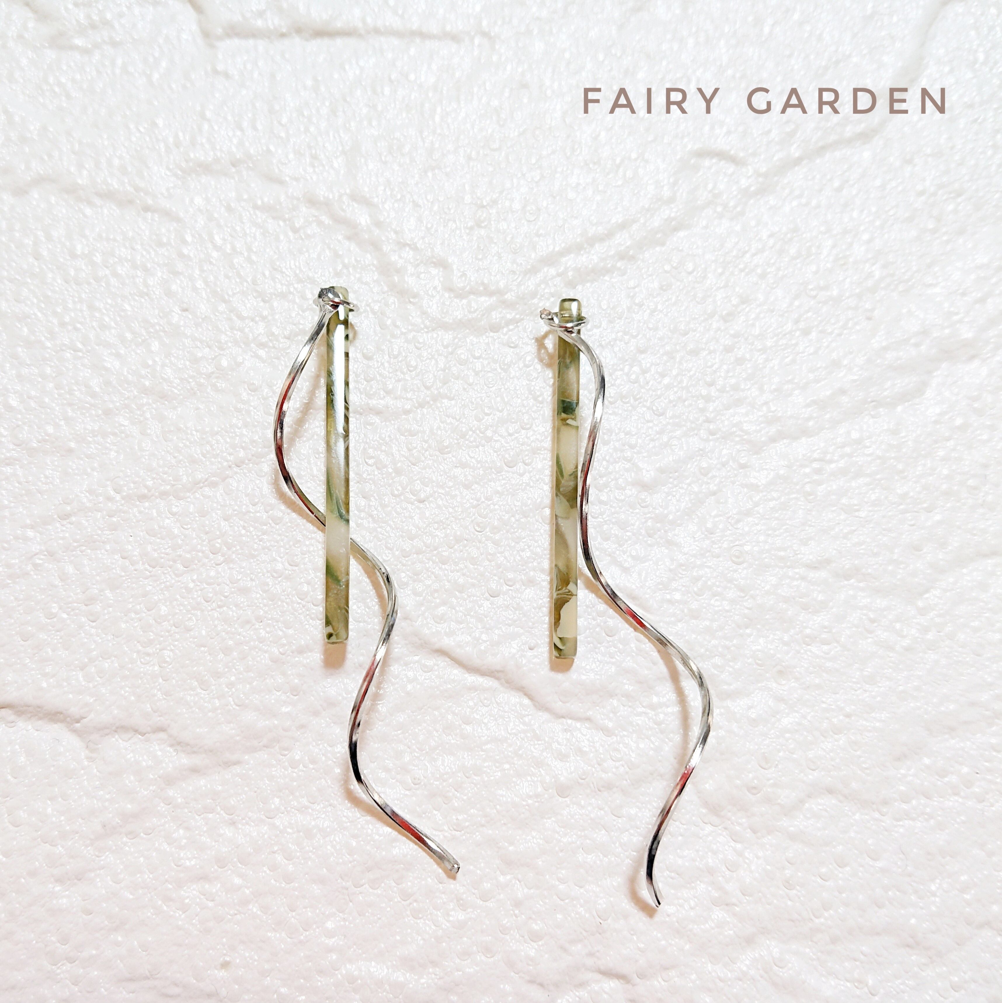 マーブルスティックにお洒落ツイストパーツを合わせ存在感抜群の綺麗め大人ゴージャスピアスに仕上げました