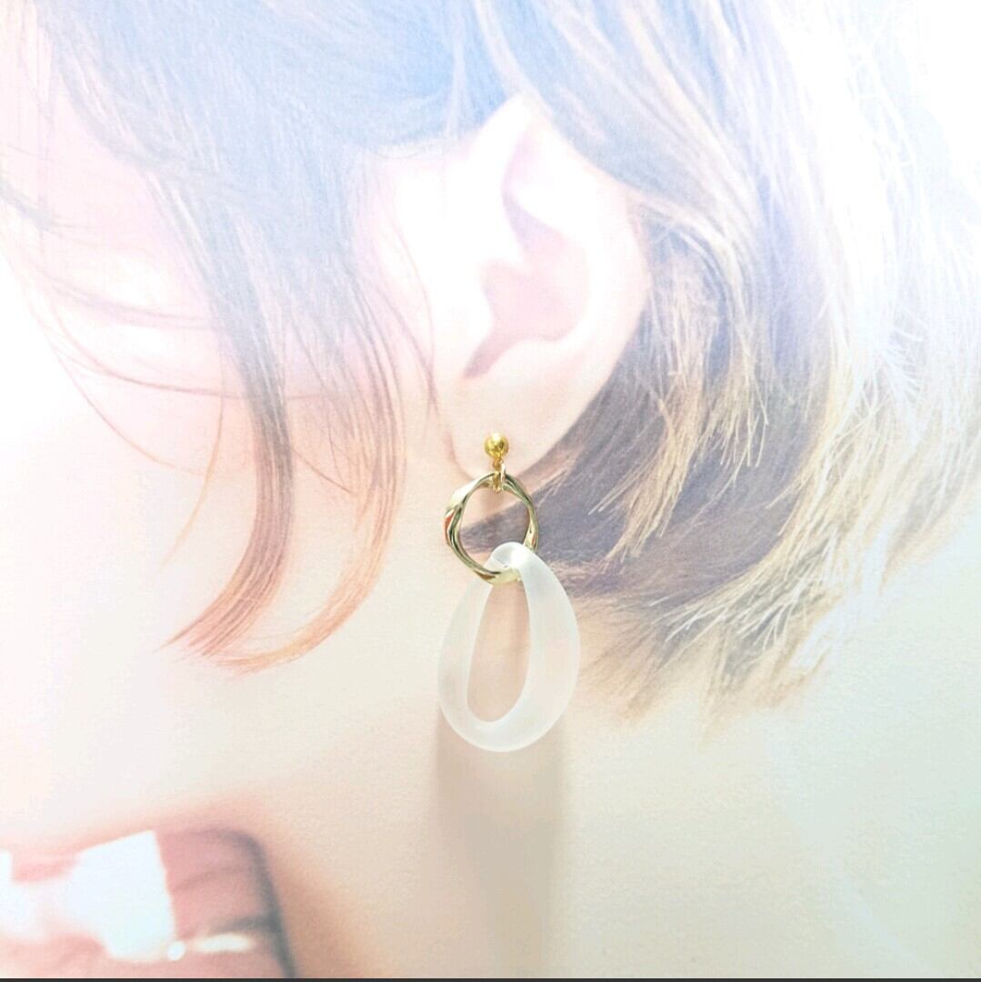 大ぶりのオーバルクリアーリングにひねりリングを合わせシンプルだけど存在感のあるデザインピアスになります