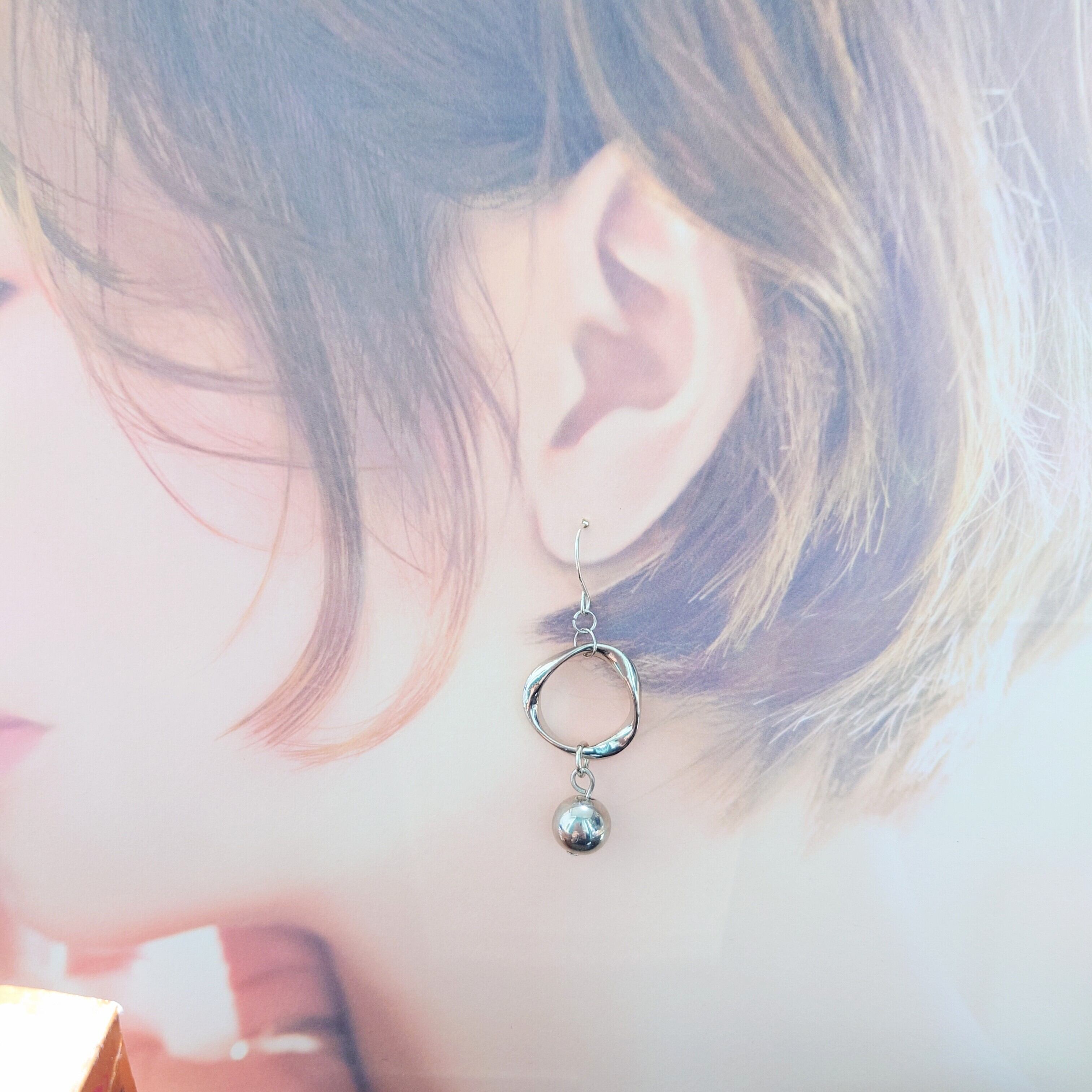 ひねりリングにシンプルカラーボールをあわせた小ぶりのタイプなのでシンプル、ラフな服装にもバッチリ、オールシーズン使用出来るので服装のアクセントとしてオススメです!