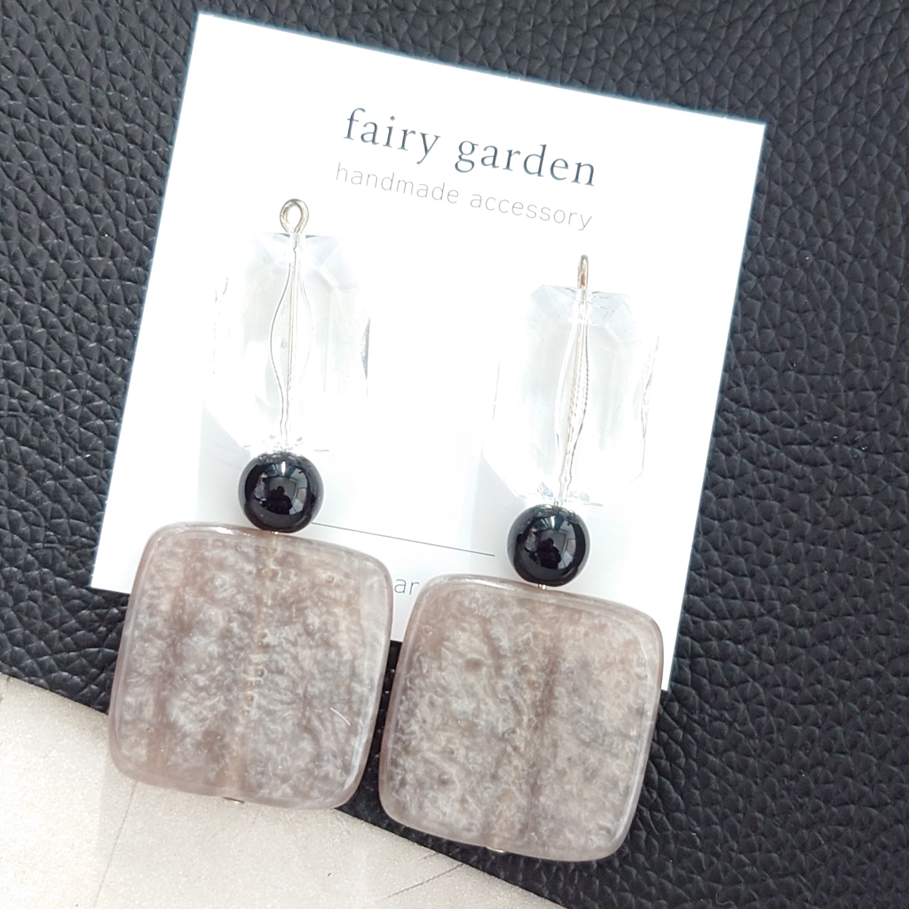 大理石調マーブルにクリアパーツを合わせスタイリッシュな大人ゴージャスピアスに仕上げました