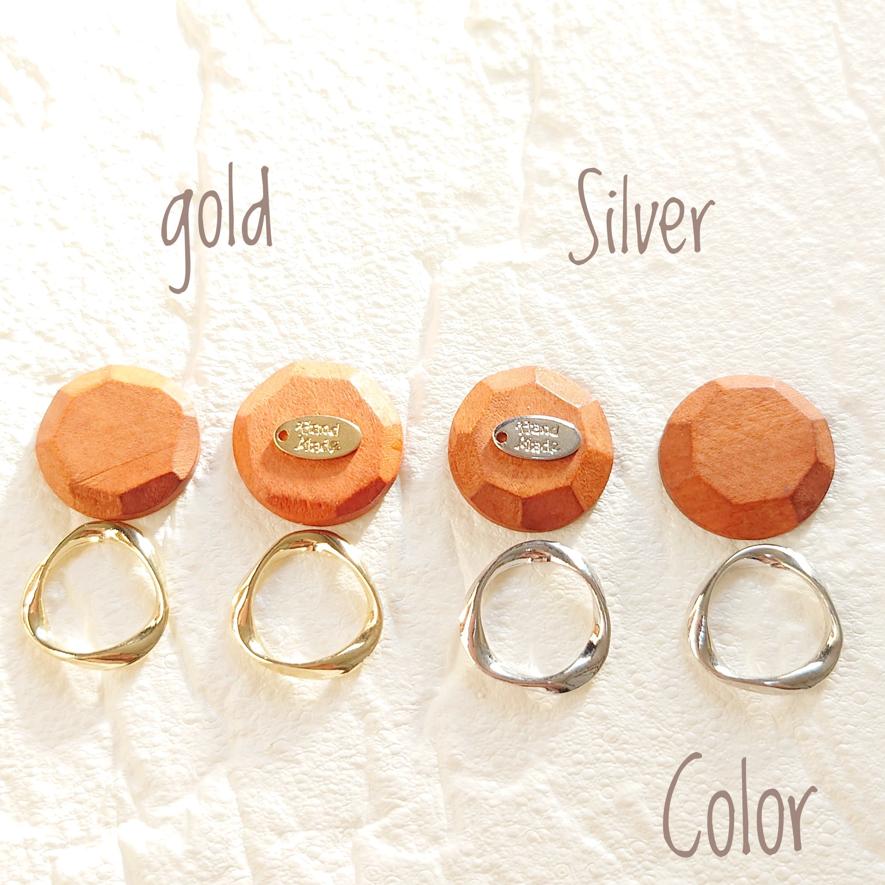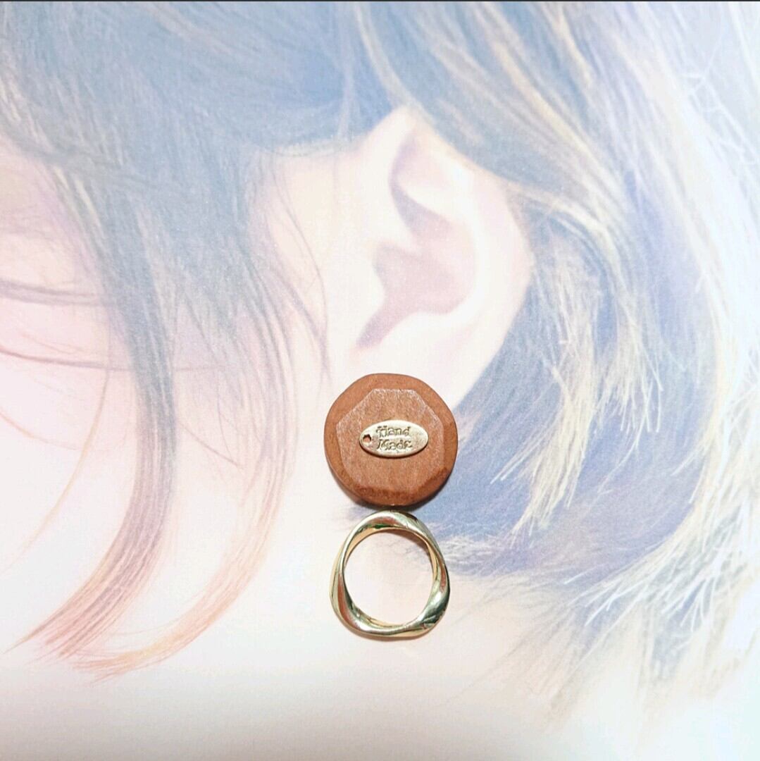 ウッドの素材にひねりリングを合わせる事で大人可愛い感じにしました