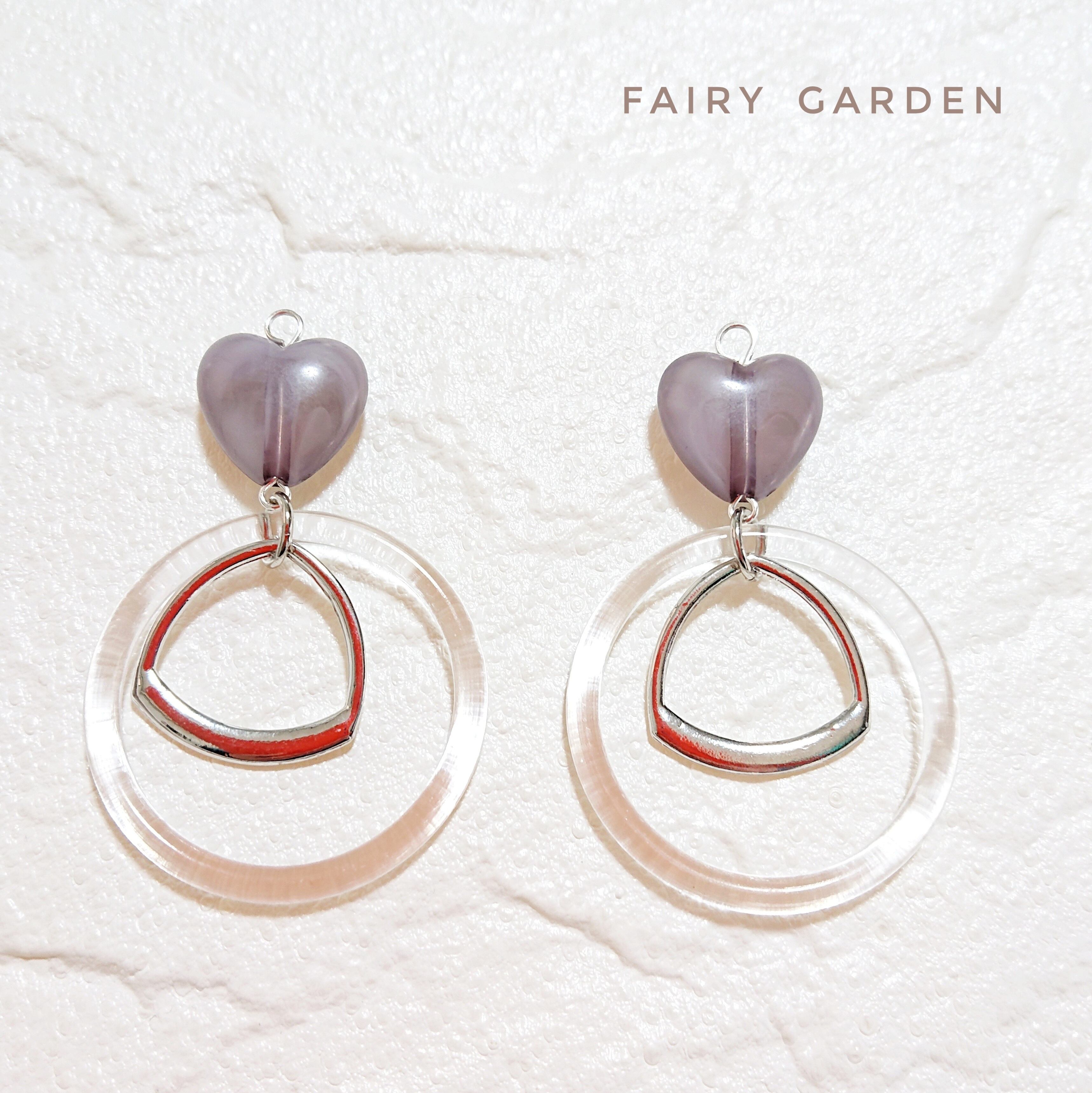 グレーハートに大ぶりクリアーリングを合わせ大きさのバランスに拘り大人でも可愛くなりすぎない
